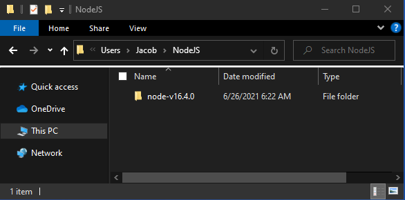 Place in a common directory (e.g. “C:\Users\Jacob\NodeJS”)