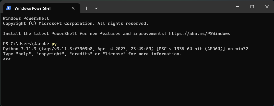You can check that python is available from the command line by running the py command in Windows PowerShell.
